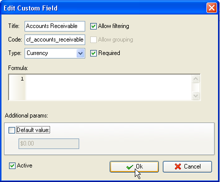 - Create the custom field "Accounts Receivable":